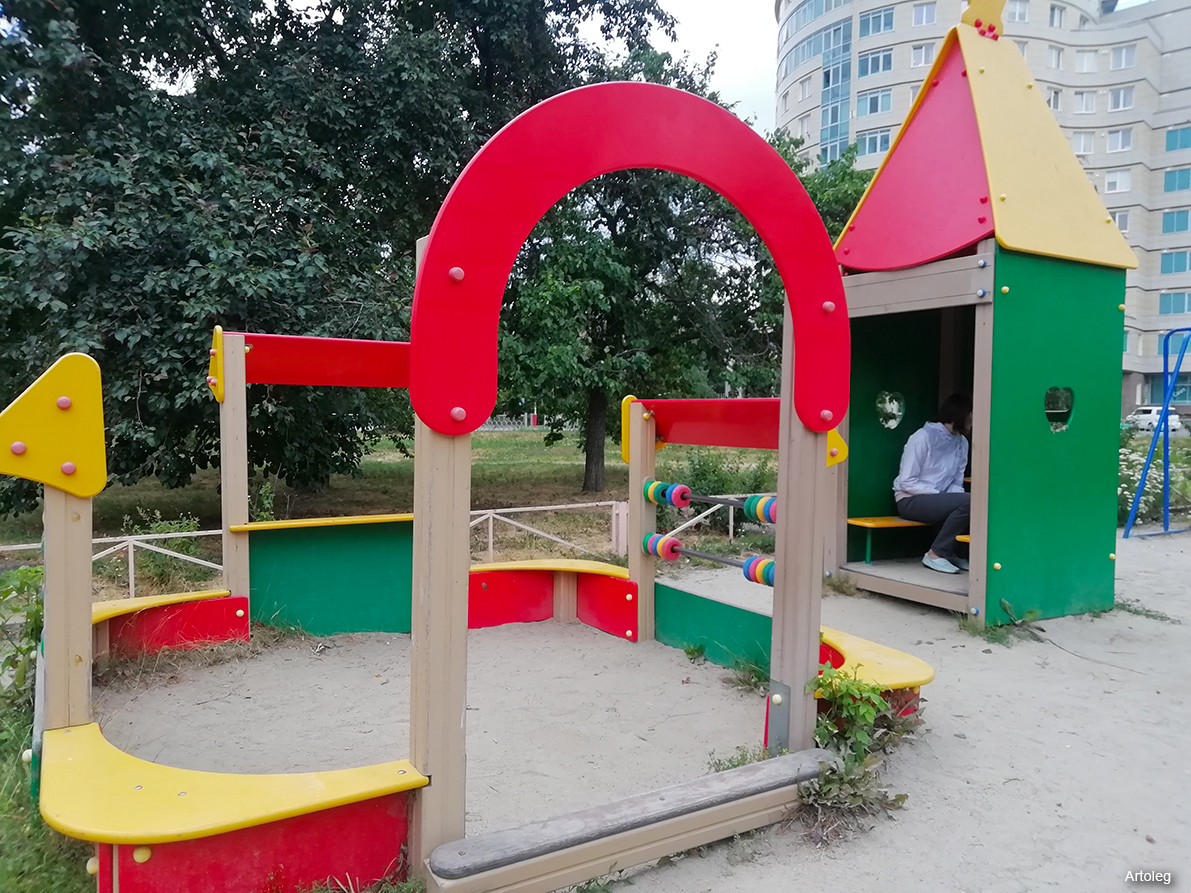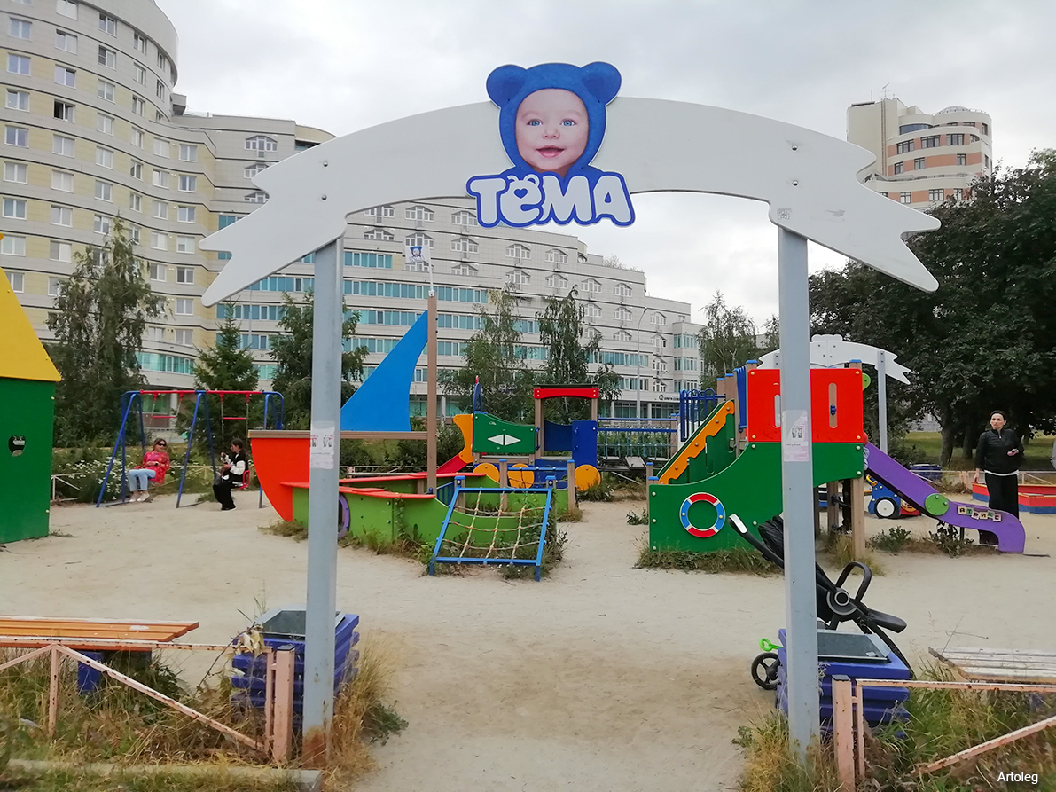 На память о молочном заводе. Детская площадка с логотипом детского питания "Тёма" у "Космоса".