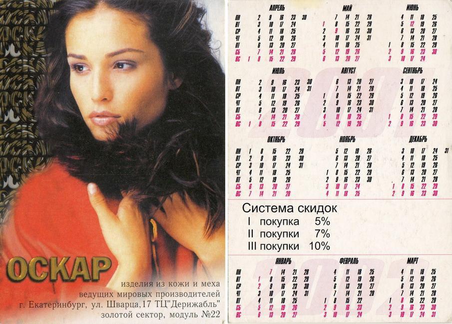 Карманный календарик "г.Екатеринбург. Магазин кожи и меха «Оскар». 2001-2002 гг."