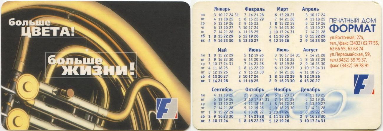 Карманный календарик "г.Екатеринбург. Печатный дом «Формат». 2000 г."