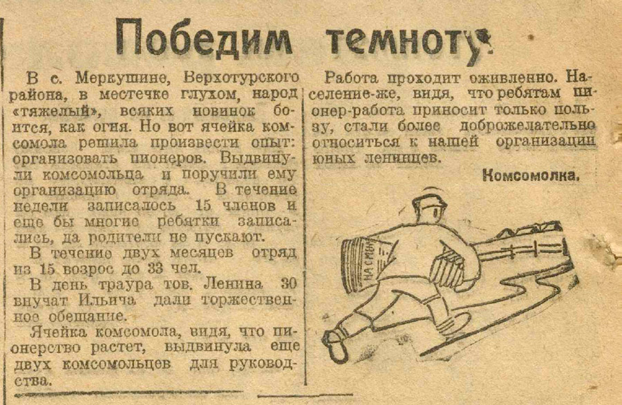 Село Меркушино. Верхотурский район. Заметка опубликована в газете "На смену!" 17 марта 1925г. ![]() |