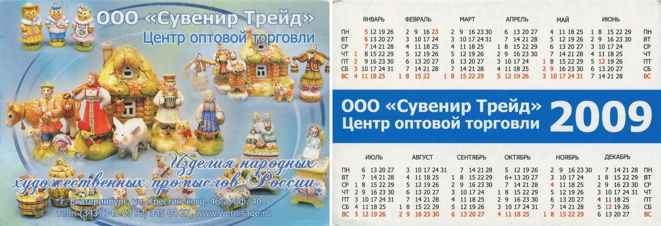 Карманный календарик "г.Екатеринбург. ООО «Сувенир Трейд». 2009 г."