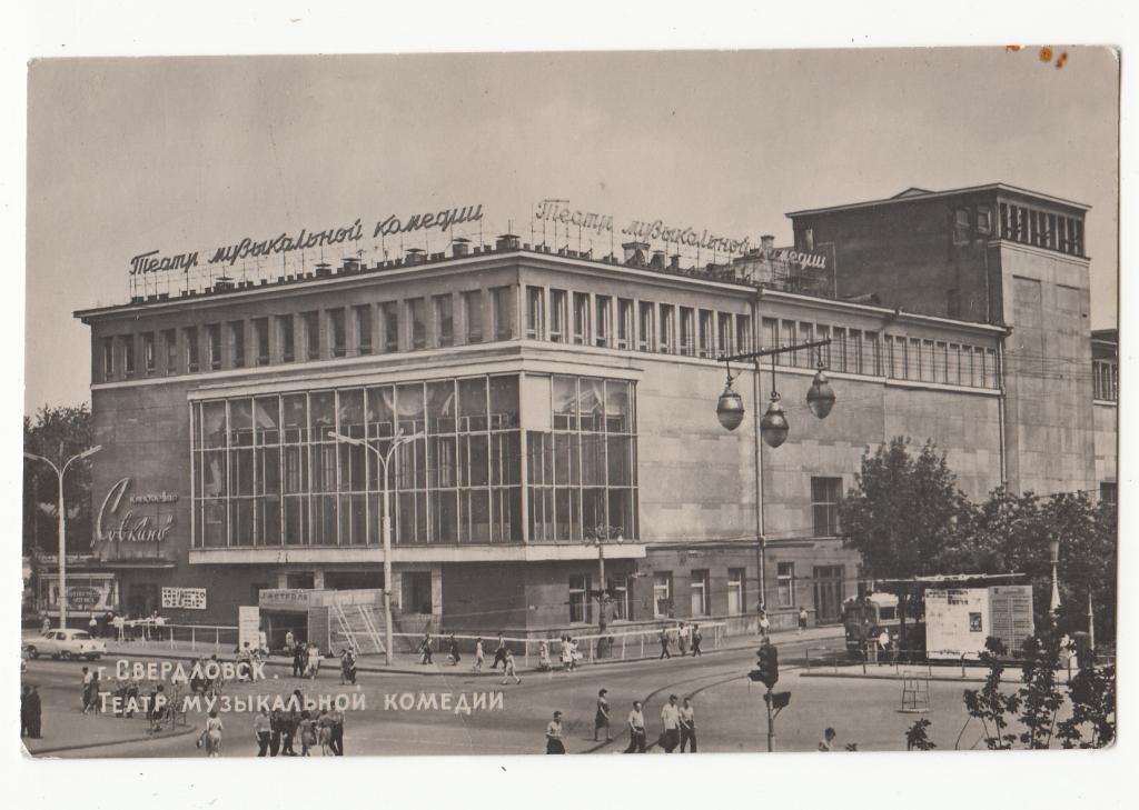 Архитектор К. А. Полков. В 1913 году кинотеатр «Лоранж» переехал в собственное помещение, построенное Коммерческим собранием на противоположном углу перекрестка Главного и Вознесенского проспектов (ныне пр. Ленина и ул. К. Либкнехта). Это было двухэтажное здание в стиле модерн, с характерным для него рисунком оконных и дверных заполнений. В 20-е г. "Лоранж" переименован в «Совкино». Кинотеатр «Совкино» закрылся в 2007 году. --------------------- г. Екатеринбург, проспект Ленина, д. 47 / ул. Карла Либкнехта, д. 20. Объект культурного наследия областного (регионального) значения «Здание театра музыкальной комедии, 1933 год; 1962 год, архитекторы Емельянов В.В., Орлов Б.Н.» Еще в середине XIX века на углу Главного и Вознесенского проспектов сформировалась небольшая усадьба, принадлежавшая екатеринбургскому чиновнику Покровскому Николаю Корниловичу. В состав усадьбы, по данным 1889 года, входили деревянный одноэтажный дом, деревянные службы, баня и кучерская. К концу XIX века – началу XX века деревянные постройки усадьбы пришли в ветхое состояние, дом был снесен. В 1909 году на участке бывшей усадьбы было построено здание кинематографа «Лоранж» по проекту екатеринбургского архитектора К.А. Полкова. Здание решалось в стиле модерн, с характерным для него рисунком оконных и дверных заполнений. Вдоль проспекта, вплотную к кинематографу, в 1915 году было построено здание Коммерческого собрания по проекту К.Т. Бабыкина. Здание собрания отличало от рядом стоящего кинематографа классическая композиция – с колоннами у главного входа, подчеркивающая солидность клубного здания. Наружная отделка фасадов, как и кинематографа «Лоранж» выполнялась в духе т.н. «кирпичного стиля». В коммерческом собрании, которое еще называли клубом приказчиков, действовала небольшая оперная труппа. В 1920 году в здании открылся Дом Октябрьской революции, в котором проводились городские собрания, лекции, концерты, одно время тут работал театр рабочей молодежи – ТРАМ и помещался клуб строителей. В 1924 году здесь выступала ленинградская труппа сатиры «Летучая мышь». В 1932-1933 годах здание клуба перестраивается под театр. Автор проекта реконструкции не установлен, возможно, им был инженер Лебединский. В результате реконструкции уличный фасад здания кардинально видоизменен, теперь он был решен в стиле конструктивизма. 8 июля 1933 года опереттой «Роз-Мари» здесь открылся Свердловский театр музыкальной комедии. Очень скоро театр стал одним из любимых у свердловчан. На его сцене ставились премьерные произведения, которые впоследствии вошли в репертуар многих театров оперетты страны: «Сотый тигр» Б. Александрова, «Табачный капитан» В. Щербачева, «Акулина» И. Ковнера, «Марк Береговик» К. Кацмана, «Анютины глазки» Ю. Милютина. В театре в разные годы работали выдающиеся актеры: М. Викс, С. Дыбчо, А. Маренич, Э. Высоцкий, Е. Коринтели, С. Духовный, Н. Энгель-Утина, Л. Сатосова, В. Сытник, Л. Невлер. В конце 1950-х годов встает вопрос о реконструкции зданий кинотеатра «Совкино» и театра музыкальной комедии. Проект реконструкции разрабатывался в 1960-1961 годах в мастерской Свердловского проектного института «Свердлоблпроект», под руководством Емельянова Владимира Владимировича. По проекту предусматривалось увеличение площадей театра за счет здания «Совкино». Изменению подвергались и уличные фасады здания. В 1962-1963 год