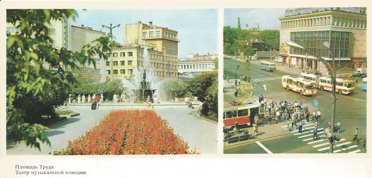 Архитектор К. А. Полков. В 1913 году кинотеатр «Лоранж» переехал в собственное помещение, построенное Коммерческим собранием на противоположном углу перекрестка Главного и Вознесенского проспектов (ныне пр. Ленина и ул. К. Либкнехта). Это было двухэтажное здание в стиле модерн, с характерным для него рисунком оконных и дверных заполнений. В 20-е г. "Лоранж" переименован в «Совкино». Кинотеатр «Совкино» закрылся в 2007 году. --------------------- г. Екатеринбург, проспект Ленина, д. 47 / ул. Карла Либкнехта, д. 20. Объект культурного наследия областного (регионального) значения «Здание театра музыкальной комедии, 1933 год; 1962 год, архитекторы Емельянов В.В., Орлов Б.Н.» Еще в середине XIX века на углу Главного и Вознесенского проспектов сформировалась небольшая усадьба, принадлежавшая екатеринбургскому чиновнику Покровскому Николаю Корниловичу. В состав усадьбы, по данным 1889 года, входили деревянный одноэтажный дом, деревянные службы, баня и кучерская. К концу XIX века – началу XX века деревянные постройки усадьбы пришли в ветхое состояние, дом был снесен. В 1909 году на участке бывшей усадьбы было построено здание кинематографа «Лоранж» по проекту екатеринбургского архитектора К.А. Полкова. Здание решалось в стиле модерн, с характерным для него рисунком оконных и дверных заполнений. Вдоль проспекта, вплотную к кинематографу, в 1915 году было построено здание Коммерческого собрания по проекту К.Т. Бабыкина. Здание собрания отличало от рядом стоящего кинематографа классическая композиция – с колоннами у главного входа, подчеркивающая солидность клубного здания. Наружная отделка фасадов, как и кинематографа «Лоранж» выполнялась в духе т.н. «кирпичного стиля». В коммерческом собрании, которое еще называли клубом приказчиков, действовала небольшая оперная труппа. В 1920 году в здании открылся Дом Октябрьской революции, в котором проводились городские собрания, лекции, концерты, одно время тут работал театр рабочей молодежи – ТРАМ и помещался клуб строителей. В 1924 году здесь выступала ленинградская труппа сатиры «Летучая мышь». В 1932-1933 годах здание клуба перестраивается под театр. Автор проекта реконструкции не установлен, возможно, им был инженер Лебединский. В результате реконструкции уличный фасад здания кардинально видоизменен, теперь он был решен в стиле конструктивизма. 8 июля 1933 года опереттой «Роз-Мари» здесь открылся Свердловский театр музыкальной комедии. Очень скоро театр стал одним из любимых у свердловчан. На его сцене ставились премьерные произведения, которые впоследствии вошли в репертуар многих театров оперетты страны: «Сотый тигр» Б. Александрова, «Табачный капитан» В. Щербачева, «Акулина» И. Ковнера, «Марк Береговик» К. Кацмана, «Анютины глазки» Ю. Милютина. В театре в разные годы работали выдающиеся актеры: М. Викс, С. Дыбчо, А. Маренич, Э. Высоцкий, Е. Коринтели, С. Духовный, Н. Энгель-Утина, Л. Сатосова, В. Сытник, Л. Невлер. В конце 1950-х годов встает вопрос о реконструкции зданий кинотеатра «Совкино» и театра музыкальной комедии. Проект реконструкции разрабатывался в 1960-1961 годах в мастерской Свердловского проектного института «Свердлоблпроект», под руководством Емельянова Владимира Владимировича. По проекту предусматривалось увеличение площадей театра за счет здания «Совкино». Изменению подвергались и уличные фасады здания. В 1962-1963 год