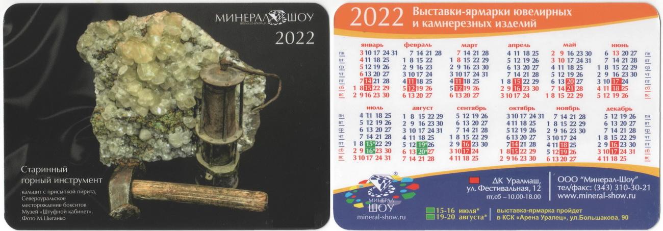 Карманный календарик "г.Екатеринбург. Выставка-ярмарка «Минерал-Шоу». Старинный горный инструмент. 2022 г."