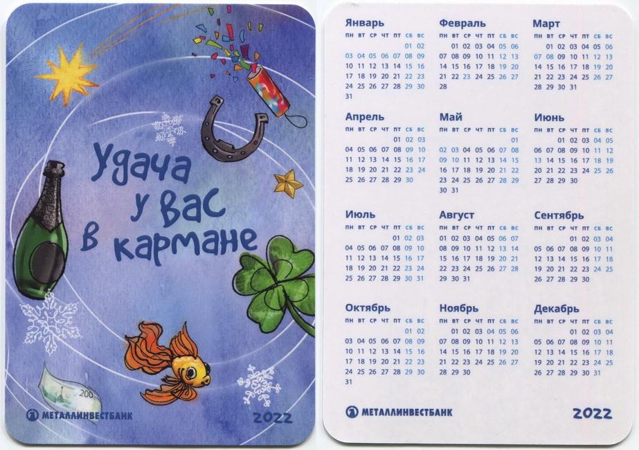 Карманный календарик "г.Екатеринбург. Банк «Металлинвестбанк». 2022 г."