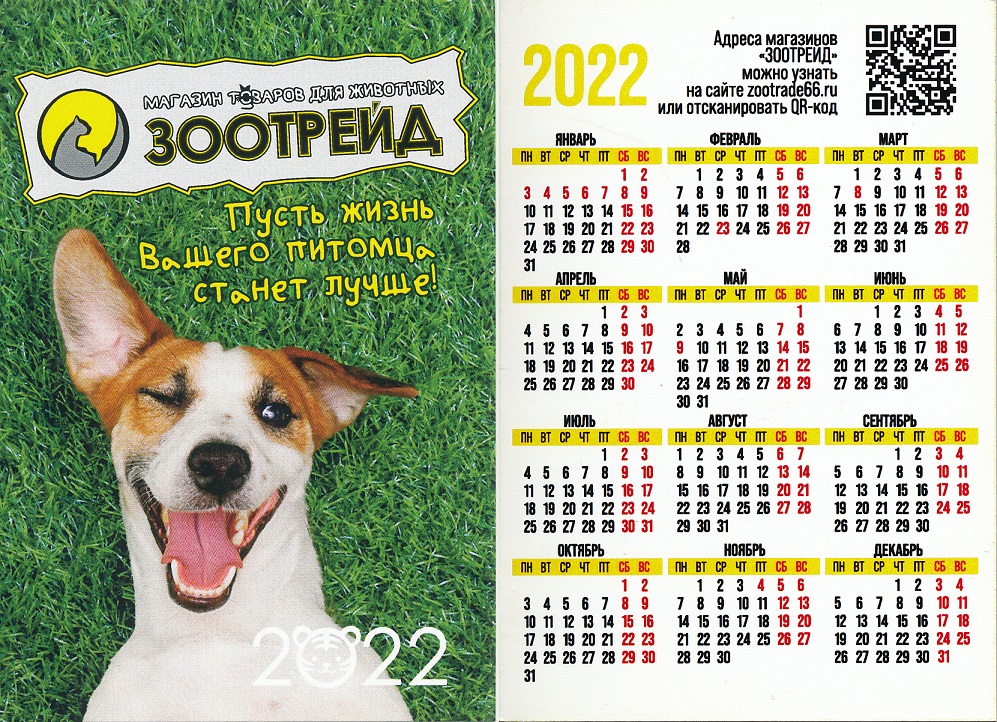 Карманный календарик "г.Екатеринбург. Магазин товаров для животных «Зоотрейд». 2022 г."