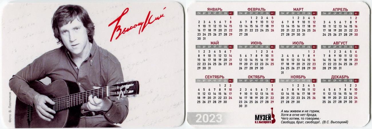 Карманный календарик "Екатеринбургский музей В.С. Высоцкого. Владимир Высоцкий. 2023 г."