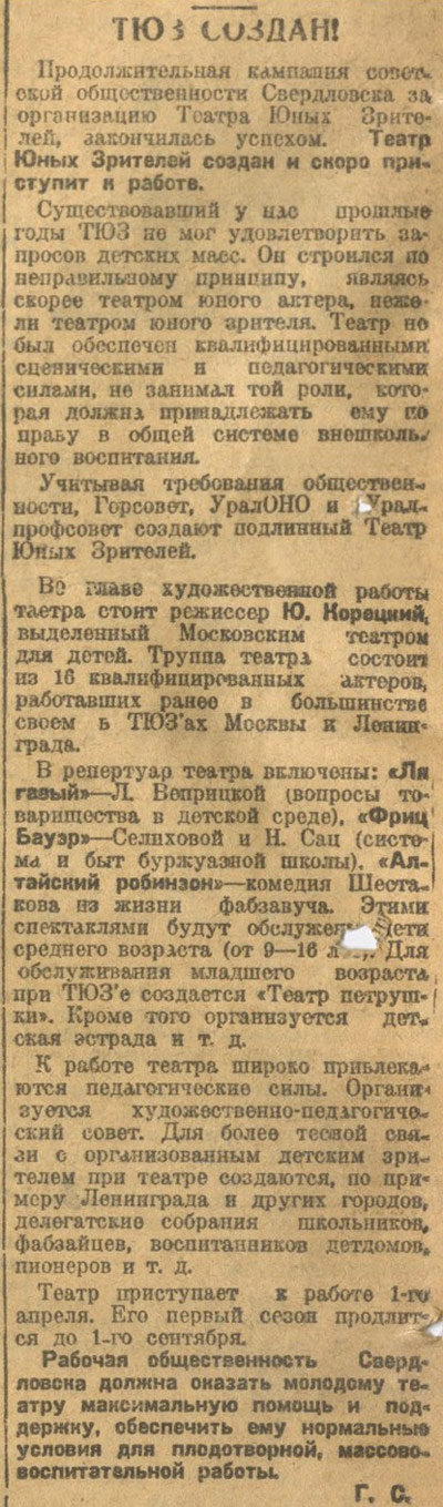 1723 ТЮЗ и ТРАМ по прежнему забыты.