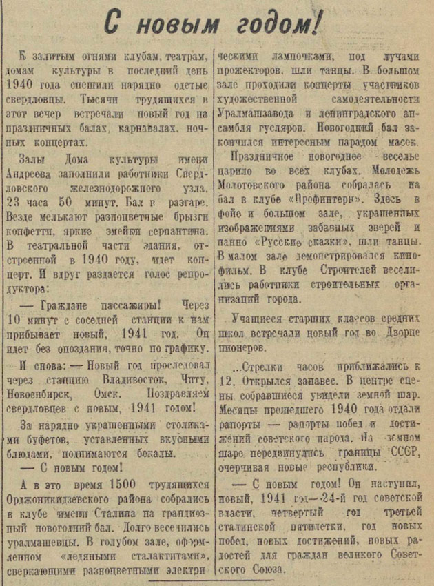 "Уральский рабочий". 3 января 1941г. ![]() |