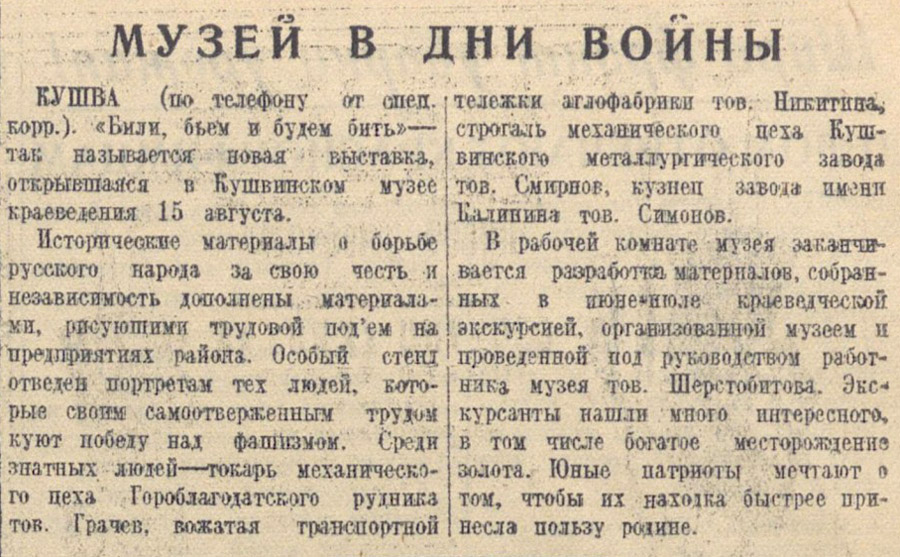 Метки: Кушва, Грачев, Никитина, Смирнов, Симонов, Шерстобитова. "Уральский рабочий" 17 августа 1941г. ![]() |