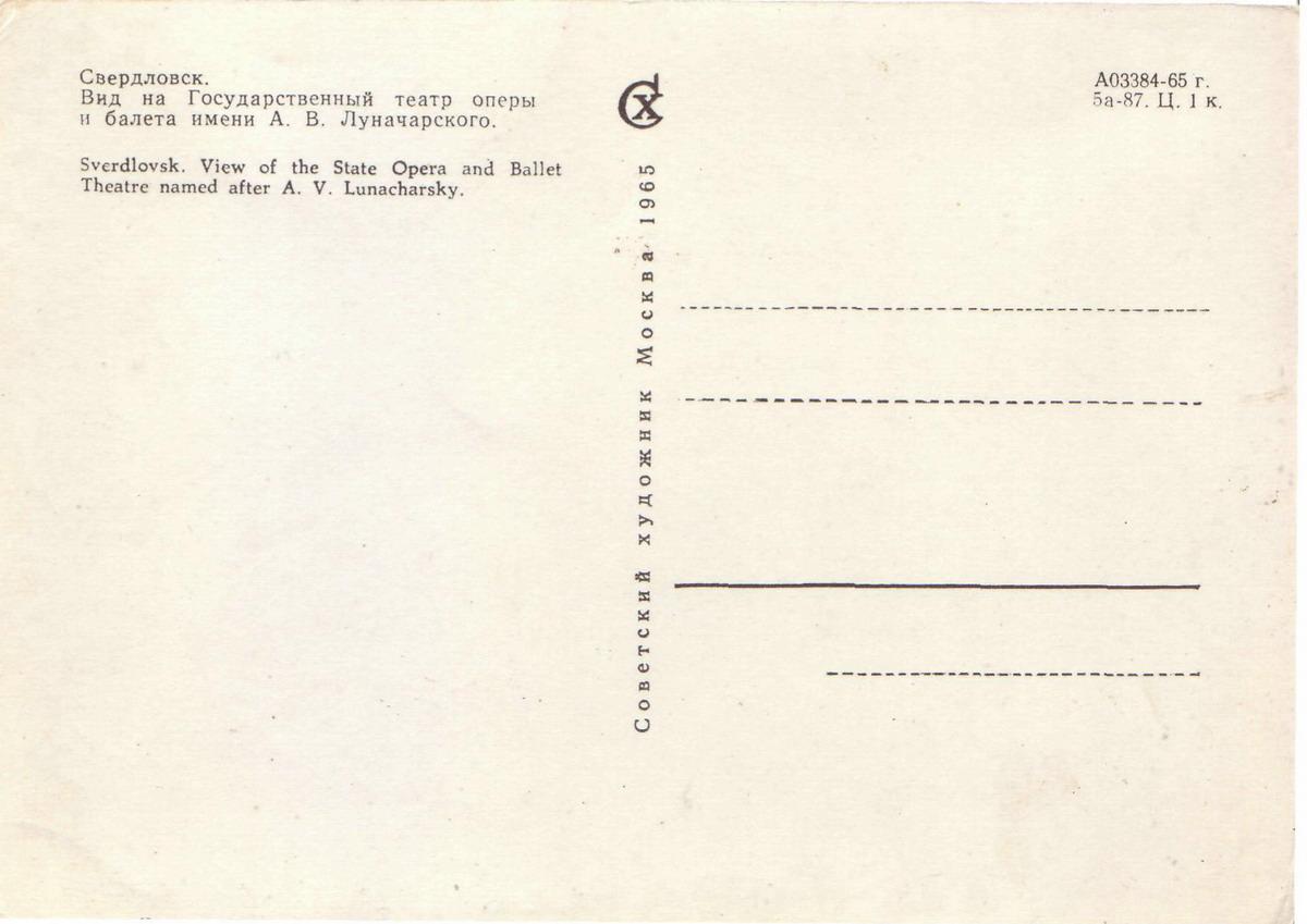 5. г.Свердловск. Вид на Государственный театр оперы и балета имени А.В.Луначарского. (Sverdlovsk. View of the State Opera and Ballet Theatre named after A.V.Lunacharsky.)