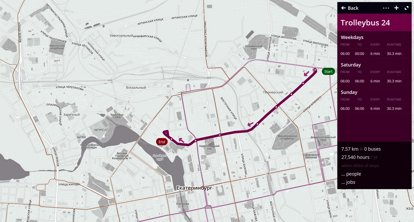 Схемы движения троллейбусов в г.Екатеринбурге.