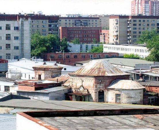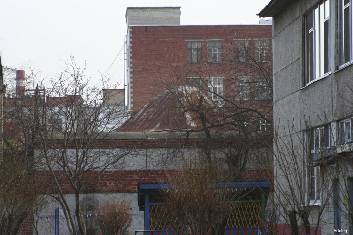 Купол Михайло-Архангельской единоверческой кладбищенской церкви на территории кондитерской фабрики "Конфи". Вид с Шорного переулка.