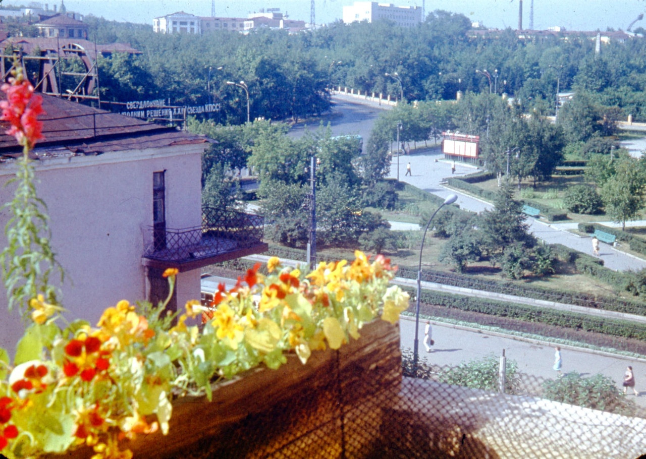 1970-е годы. Вид на площадь Коммунаров и мединститут с балкона дома Московская, 29.