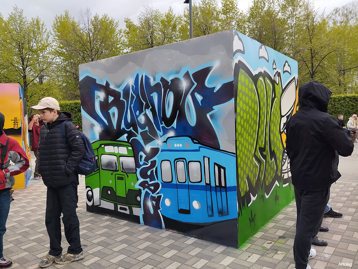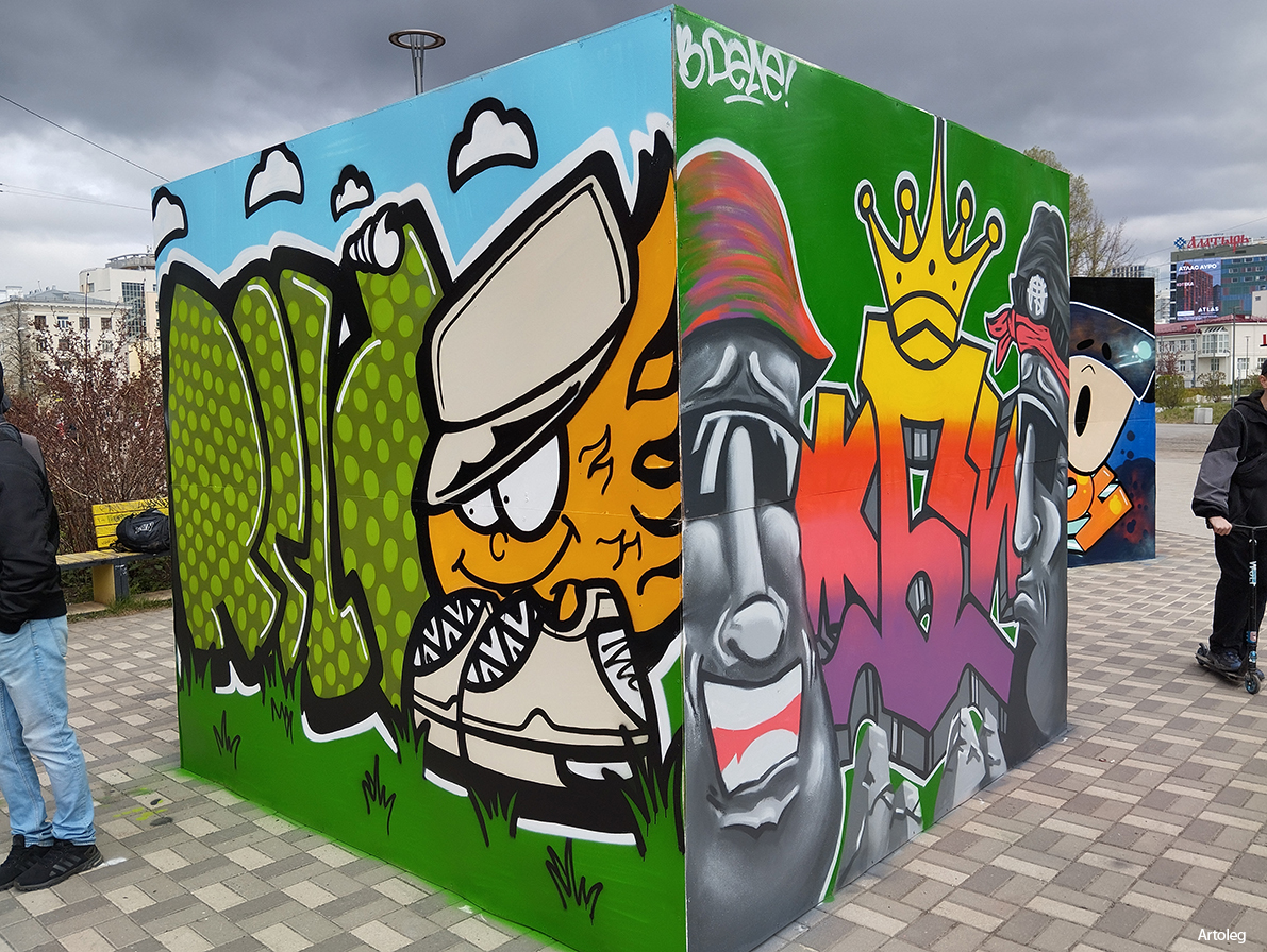 Граффити-баттл на фестивале Урал Культур 18 мая 2024 г. возле бетонного парка (Plaza) у Дворца молодежи.