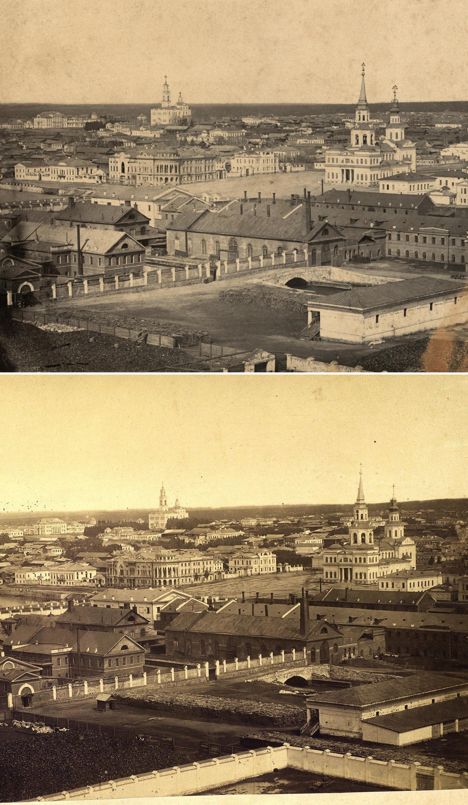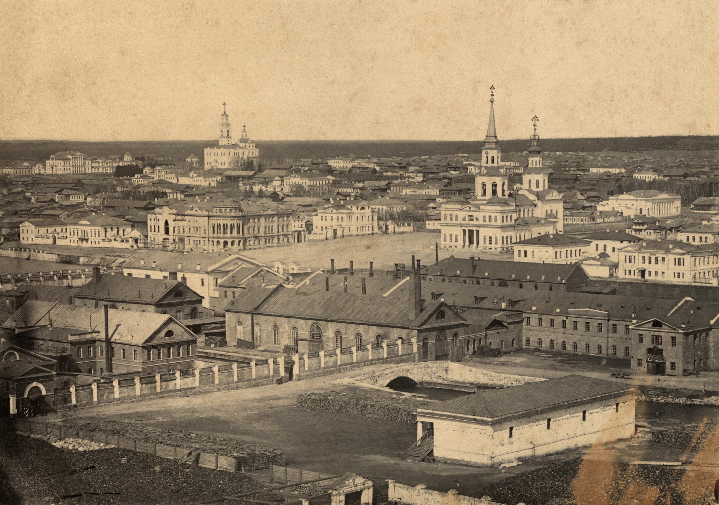 Не помню было или нет. Вид с Большого Златоуста, 1866? г. Вот спасибо, Игорь! Вроде такой фотографии ещё не было. Уже есть ротонда в Харитоновском саду. А на месте кинотеатра "Лоранж"/театра музкомедии ещё деревянные избушки. Наконец-то появилось фото Вознесенской церкви до реконструкции! |