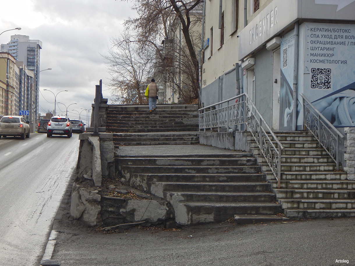 Деформировалась часть подпорной стены и лестничного марша на Московской между Малышева и Радишева. ![]() -------------------- |