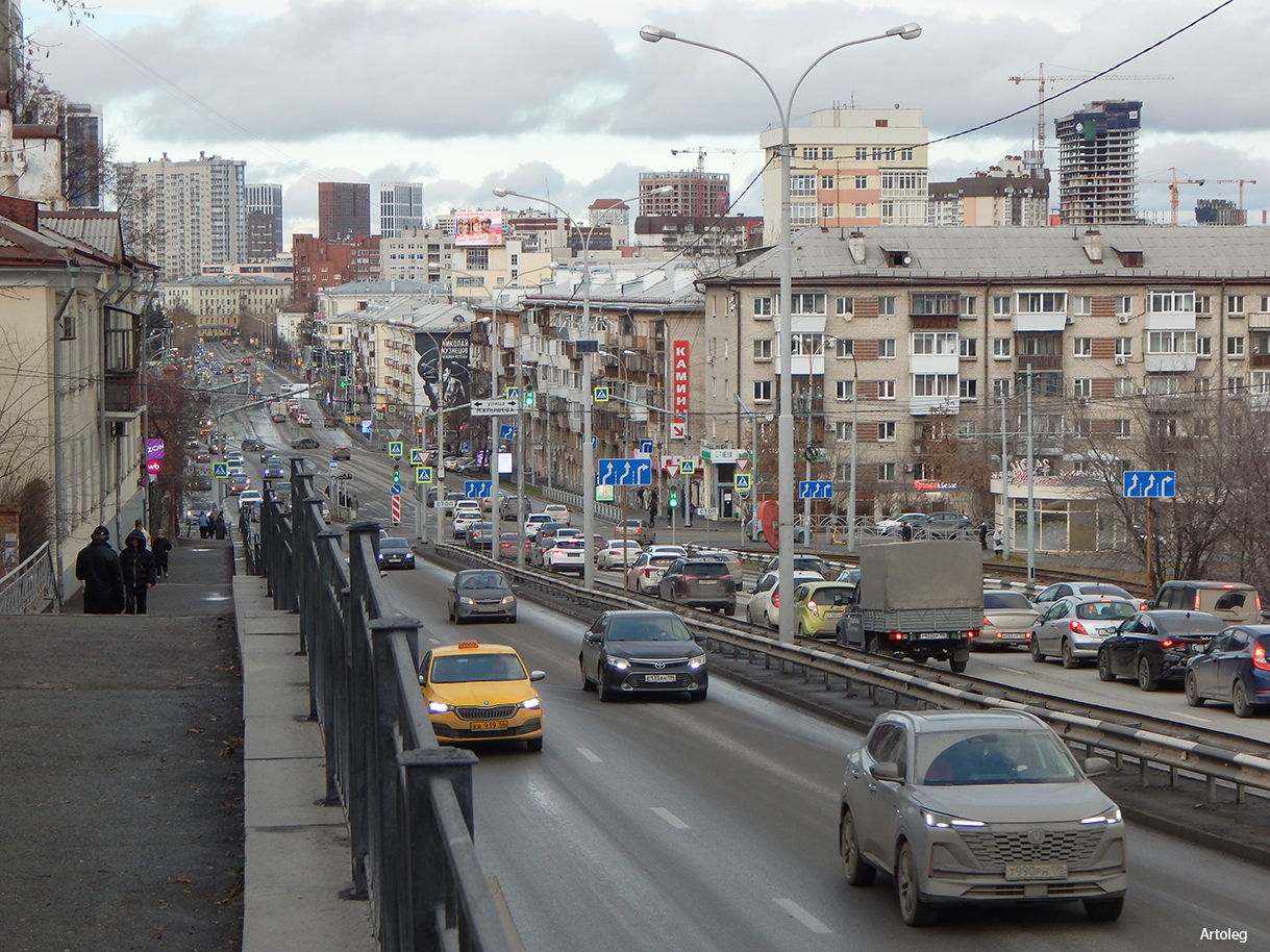 Вид от Московской, 28 в сторону Малышева. 1959г. Слева Московская, 26а. Улица на этом участке ещё не срыта. Фото Г.Мокрушин. Архив "Музей истории Екатеринбурга". Нечётная сторона Московской - напоминание о моём школьном детстве. Именно такой я её и помню: крутой, заснеженной, с маленькими домушками, не видной на снимке воинской частью, запахом тушёной квашеной капусты (кухня в/ч как раз выходила на улицу), следами детских санок и ледяными "катушками". |