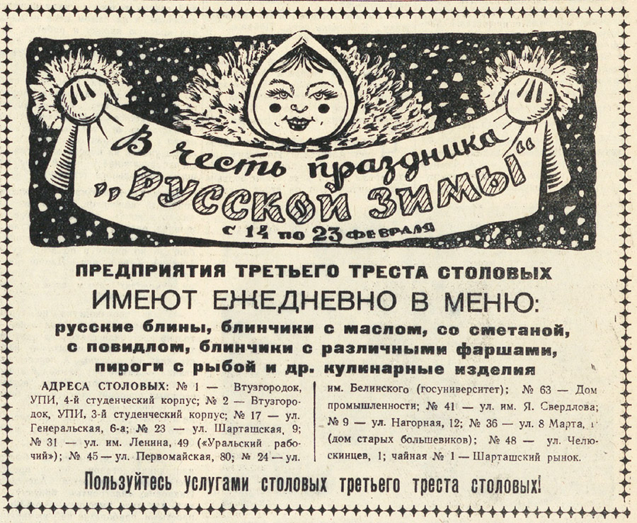 В "Доме старых большевиков" (ул.8 Марта, 1) была столовая №36. "Вечерний Свердловск" 14 февраля 1958г. ![]() |