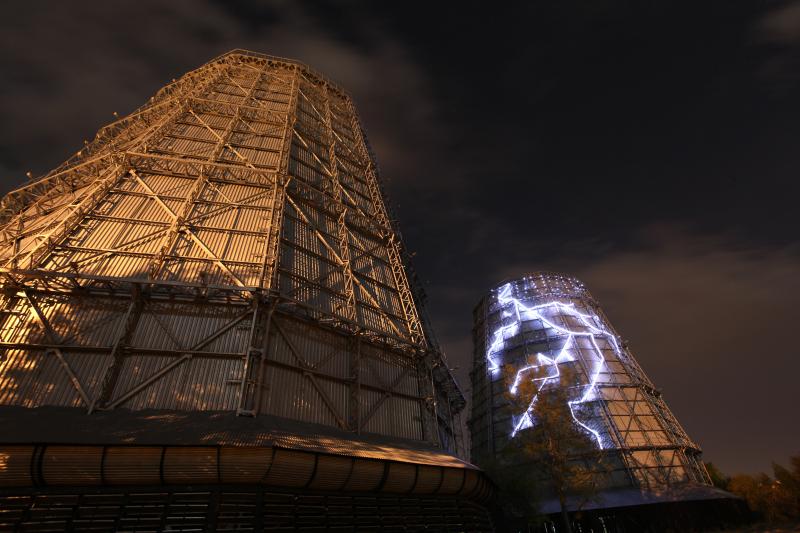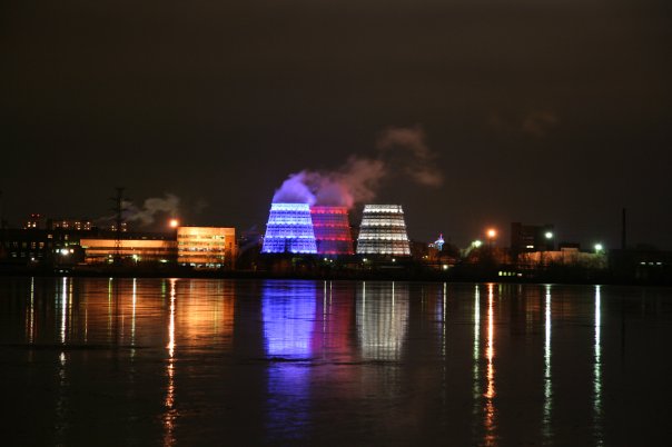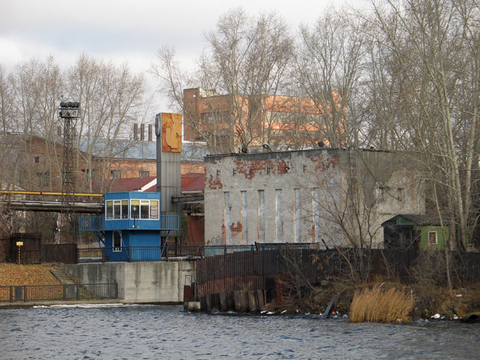 Жуткого вида здание - бывший купоросный цех. Беседка - подарок рабочим завода от участников выставки. А теперь градирни: