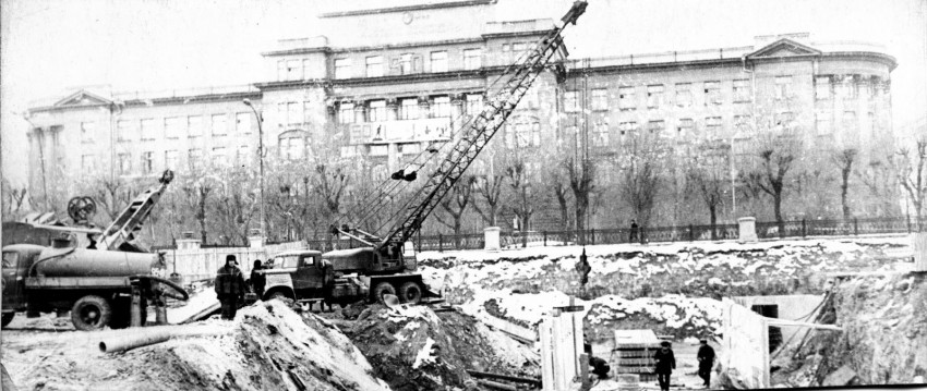 1970-е. Строительство подземного перехода по ул. Челюскинцев напротив Управления Свердловской ж.д.