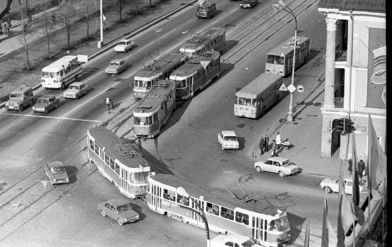 1973 г., проспект Ленина, главпочтамт, гостиница "Исеть", дом Севастьянова, УПИ. При нажатии на фото открывается полный размер - 19 мегапикселей. Размер файла 5,17 Мб. ![]() Источник Отличный снимок! В центре кадра - трамвайная сцепка КТВ-55+КТП-55 |