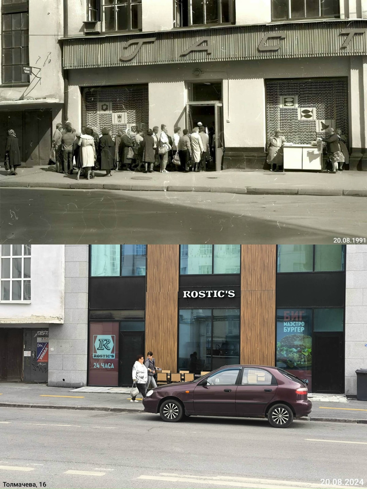 20.08.1991/2022 гг. Гастроном № 5, вход с ул. Толмачёва. Появилось более качественное сравнение этой фотографии. Между снимками ровно 33 года. Автор сравнения - Сергей Делькин. 20.08.1991/20.08.2024. Гастроном № 5, вход с ул. Толмачёва. ![]() Фото № 1 - Анатолий Андреевич Грахов. Источник |