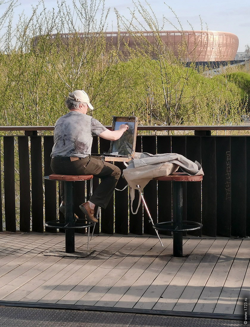 "Тёплый вечер". 2018г. Художник А.Ремезов. ![]() Обычно художники перед тем, как положить краску, наносят контуры карандашом. Блин, неужели нельзя было начертить стены "Высоцкого" параллельно?! Этот кривой, сужающийся кверху "Высоцкий" сразу вызывает отторжение и говорит о непрофессионализме "художника". |