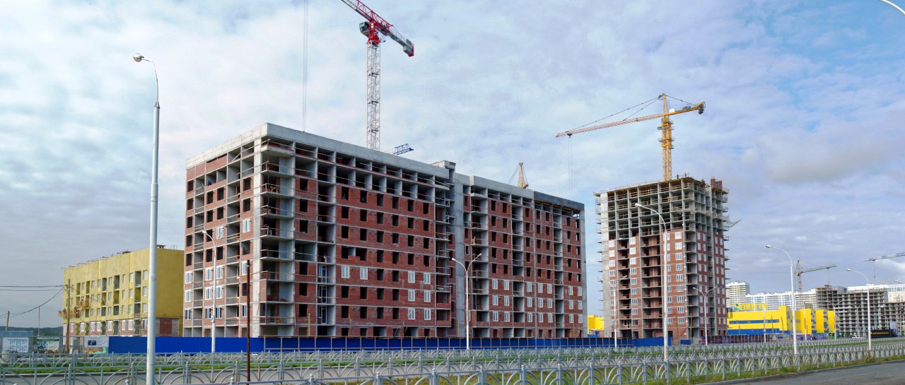 Вид с ул. Рябинина на строящиеся дома по ул. Хрустальногорской.