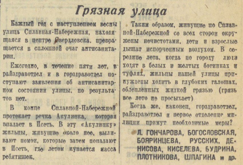 Свердловск должен быть чистым городом.