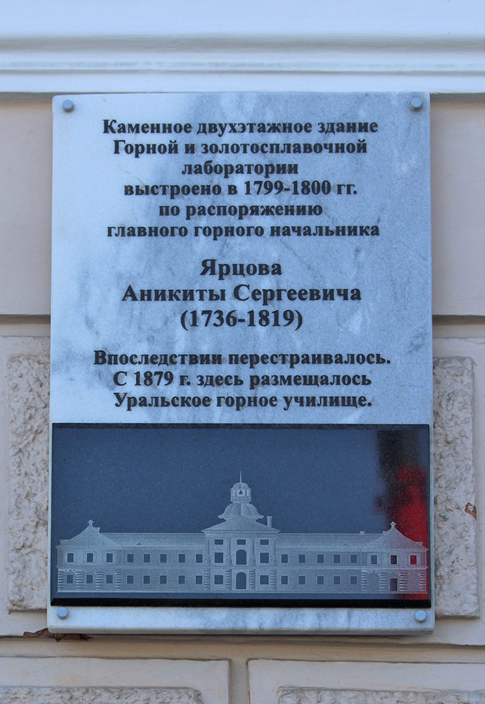 Горной и золотосплавочной лаборатории выстроено в 1799-1800гг. по распоряжению главного горного начальника Ярцова Аникиты Сергеевича (1736-1819) Впоследствии перестраивалось. С 1879г. здесь размещалось Уральское горное училище. пр.Ленина, 28. Фото Кузнецов Леонид. ![]() |