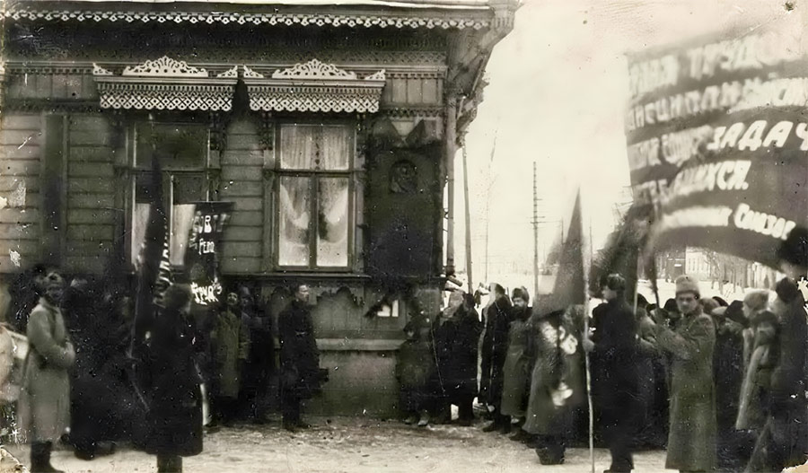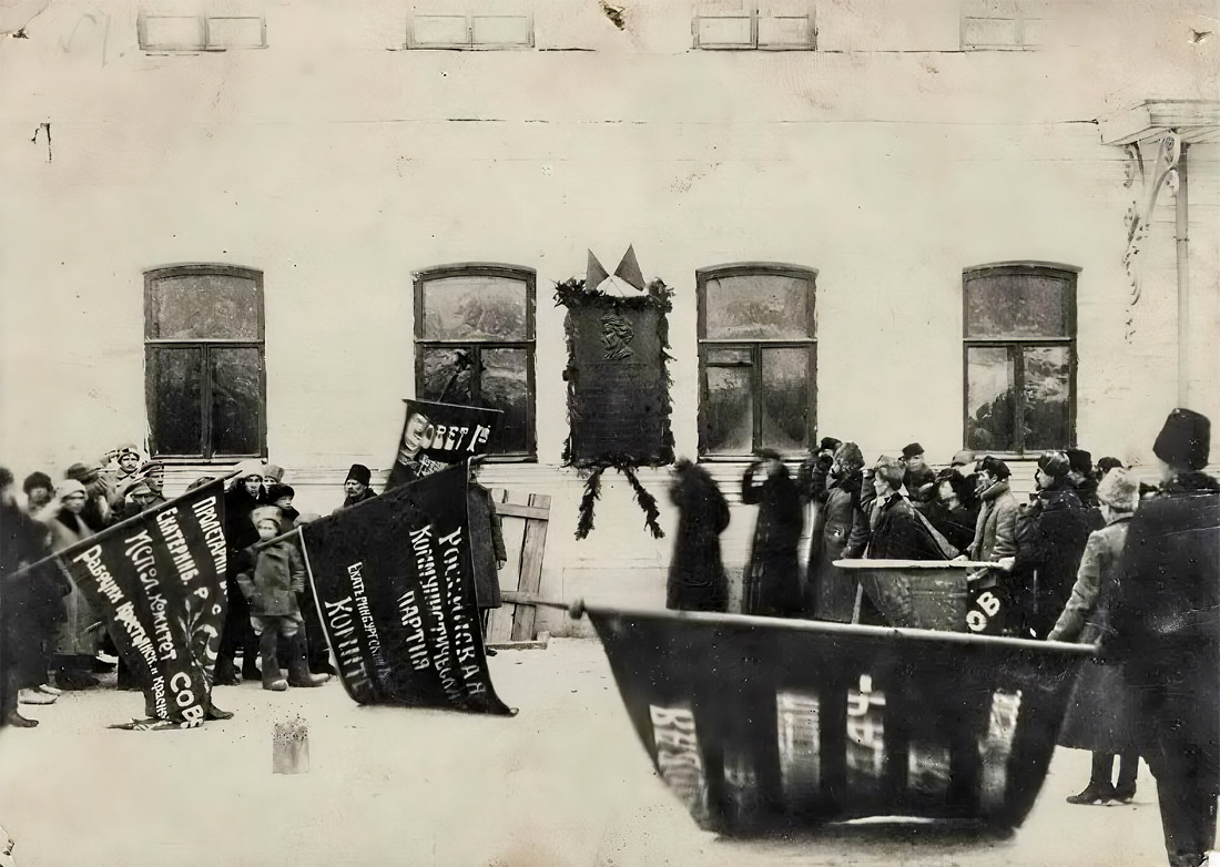 Фото 7 ноября 1920г. Архив: "СОКМ". Скульптор Ваулина, мастер Каширин (Каслинский завод). Размер: 120х85см. Первоначальное место установки доски, дом по ул.Розы Люксембург, 11 / Энгельса, 16 (здание сохранилось). В 1980х гг. доска была перенесена на жилой дом по ул.Розы Люксембург, 9 / Энгельса, 11. (предположительно). Сейчас доска хранится в музее истории Екатеринбурга. ![]() ![]() |