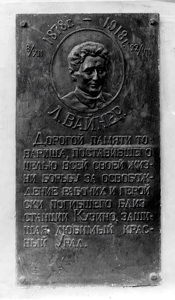 Фото 7 ноября 1920г. Архив: "СОКМ". Скульптор Ваулина, мастер Каширин (Каслинский завод). Размер: 120х85см. Первоначальное место установки доски, дом по ул.Вайнера, 8 (здание сохранилось). В дальнейшем доску перевесили на фасад Драматического театра (Вайнера, 10). Сейчас доска хранится в музее истории Екатеринбурга. ![]() ![]() |