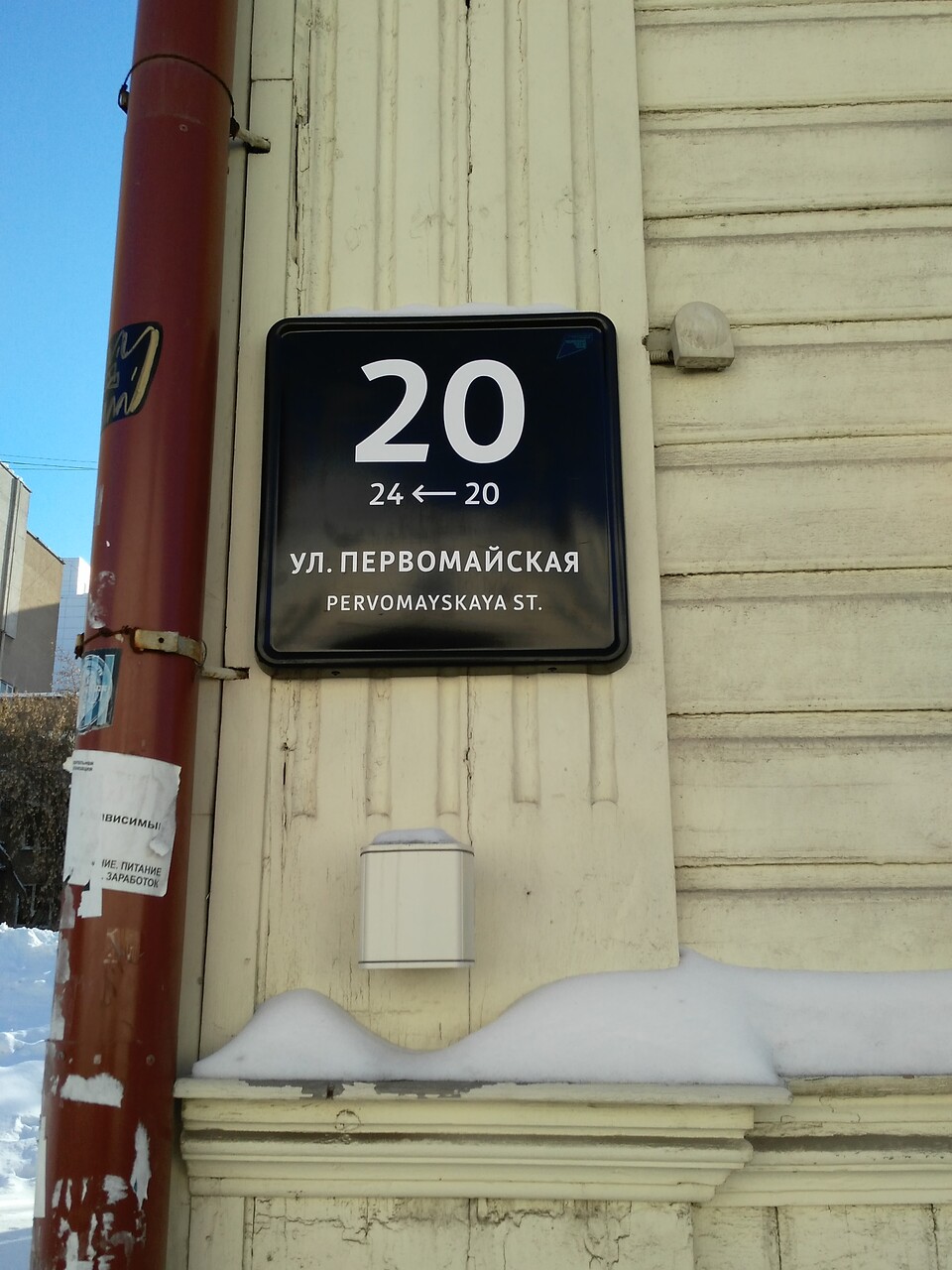 Насторожило появление на центральных улицах новых адресных табличек, весьма унылых и каких-то совсем неоптимистичных, на мой взгляд. ![]() Согласен, не самый удачный вариант табличек. Вечером и ночью вообще будет не разглядеть надписи. Ещё не понял смысл чисел со стрелочками. На втором фото адрес дома Первомайская, 20, ниже написано 24 <- 20. То есть можно прочитать как "к дому 24 - в ту сторону". Почему именно 24, ведь последний дом на улице имеет номер 122? Логичнее было бы написать 122 <- 20. Следующий за 20м домом - тоже не 24, а 22. К слову, дома Первомайская, 24 вообще нет, есть 24а и 24в. Откуда составители таблички взяли номер 24??? А на третьем фото вообще непонятка. Номер дома 36,а написано 36 <- 20. Что должен подумать человек, глядя на эту табличку? Лично я бы решил, что 36 - это последний номер дома на этой улице, а 20 - первый. Я считаю, что если и использовать стрелочки, то нужно писать стрелочку от первого дома по этой стороне улицы к последнему, скажем, для улицы Карла Либкнехта надпись будет такая: 48 <- 2, а для Первомайской, соответственно - 122 <- 2. Лично мне кажется, что по дизайну и размеру вывески производства УОМЗ - оптимальные. Вдобавок, они ещё и подсвечиваются. Кстати, на них тоже есть стрелочки, и всё понятно написано. См. фото ниже: ![]() |