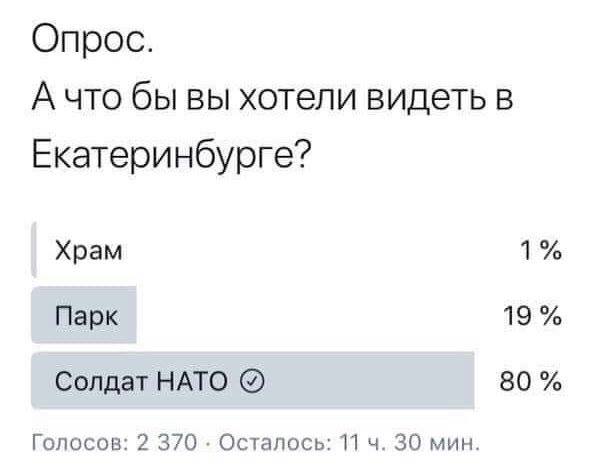 Трамп:"Оу!!! вы из Екатеринбурга! Знаю , знаю , вы там танки делаете. Мы в США тоже танки Абрамс делаем и они лучше ваших Т-90" Куйвашев:" Мы в области давно уже Армату делаем и она на порядок лучше ваших Абрамсов". Трамп:" А мы в штатах начали делать беспилотные легковые автомобили Форд" Куйвашев: " А мы на Уралмаше беспилотный шагающий экскаватор будем делать" Трамп: " А у нас самые большие атомные подводные лодки" Куйвашев: " А мы комплектующие Посейдона делаем, который все ваши атомные подводные лодки переплюнет". Обидно стало Трампу. А ответить не может - Куйвашев ему по всем позициям нос утер. " Зато у вас в Екатеринбурге нищие пенсионеры по помойкам побираются!!!!!!" -------------------- Fort716 - это