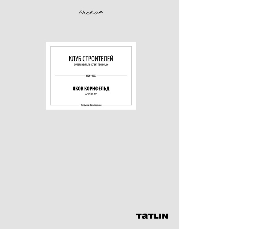 Клуб строителей. Архитектор Яков Корнфельд // Л.Токменинова. - Екатеринбург: 2016. - 56 с. (Сер.Архиве)