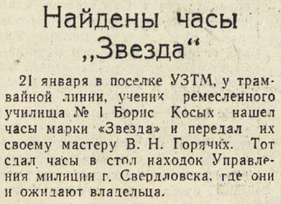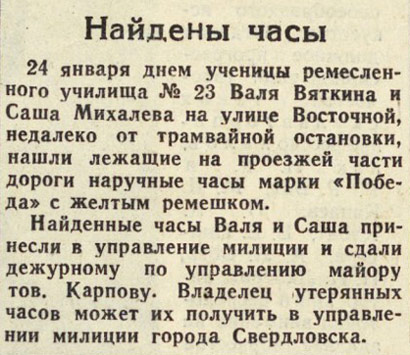 М.Петров. "Вечерний Свердловск" 15 января 1958г. ![]() |