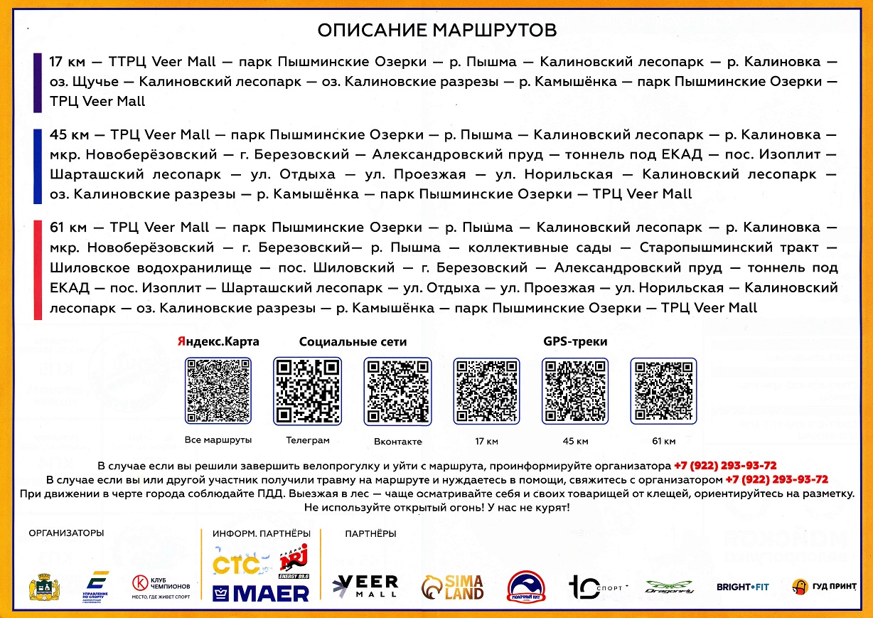 Четыре дистанции на выбор: 17, 22, 37,5 и 50 километров. Маршруты проложены по северным окрестностям Екатеринбурга и проходят по территории парка Победы, Шувакишского, Калиновского и Шарташского лесопарков. Старт от главного здания УрГПУ (пр. Космонавтов, д. 26, станция метро Машиностроителей). Финиш — площадь перед главным учебным корпусом Уральского федерального университета (ул.Мира 19). |