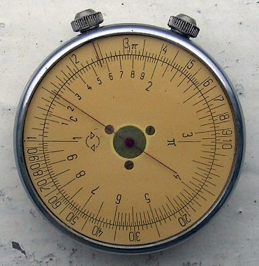 Ну блин, таки догадались.....Да ,это логарифмическая линейка ,мой батя ходил с ней учиться.На обратной стороне есть другой циферблат,там по моему тангенсы -котангенсы.