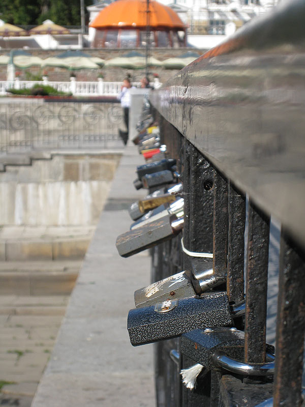 Все молодожены вешают просто замочки, а здесь целое садо-мазо с цепями.