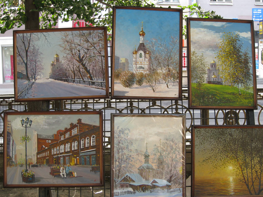 ![]() Например такие, холст-масло. ![]() Или такие. ![]() А вот с этими случился конфуз. Тётенька, продающая их заявила, что запрещает мне снимать. ??????? Я сказал, что всё равно буду снимать. Я снимал, а она загораживала мне вид одной из картинок. А ведь это всего лишь постеры, то есть напечатанные копии. ...Киса, скажите мне, как художник-художнику, вы рисовать умеете?.. |