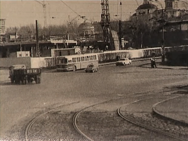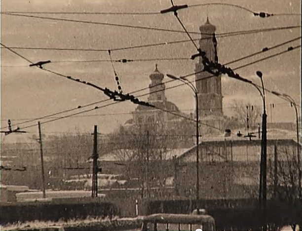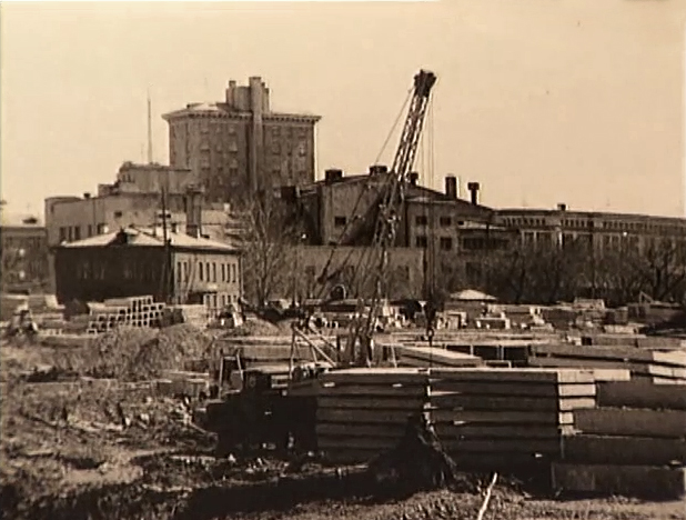 Можно достаточно точно установить временной отрезок съёмки: 1950-1953 гг. Ибо на фото 1954 г. уже заканчивается строительство нескольких пятиэтажек. А на этих кадрах оно ещё даже не начато. А мне кажется конец 40х |