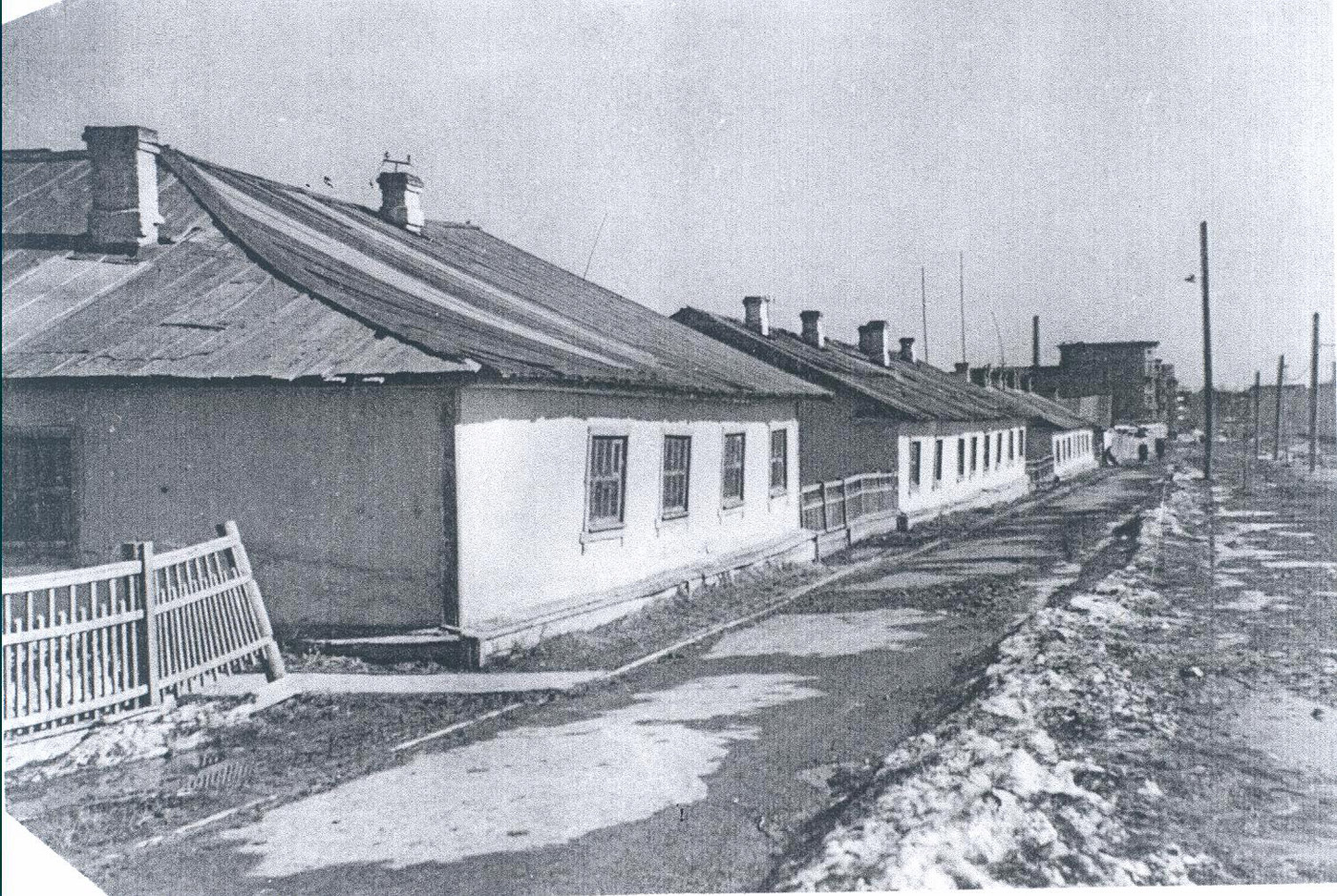Улица Культуры. На заднем плане жилой дом по ул.Красных Партизан, 5. ![]() Рабочие общежития по ул.Культуры. ![]() Барак на 3 км. источник sospp.ru/esh-na-ural |