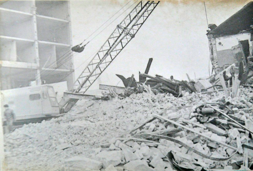 Справа снос старых зданий вдоль 8 Марта. Фото конец 1970-х. Фото архив СИНХа. ![]() |