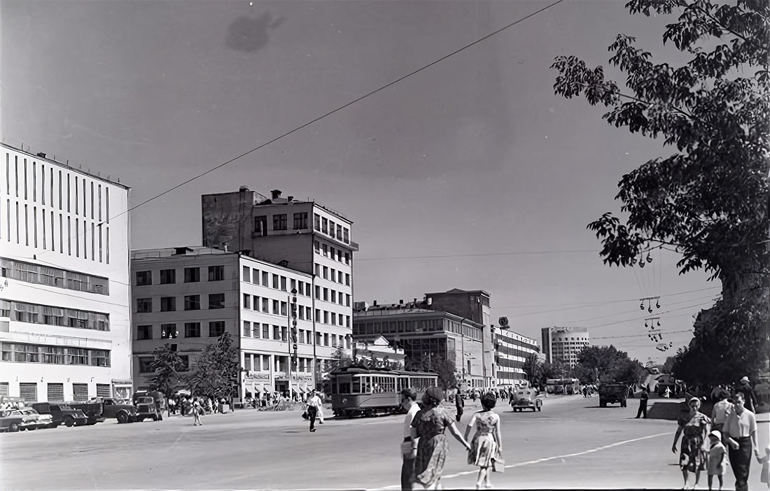 (В настоящее время АО «УПП «Вектор», ул.Малышева, 126). Фото Чураков М.М. 1962г. Архив: «Музей архитектуры имени А.В.Щусева». На переднем плане трамвайные пути на перекрёстке Малышева – Гагарина. ![]() |