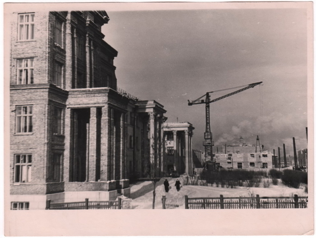 Строительство здания Управления Урало-Сибирского округа железной дороги на ул. Свердлова в г. Свердловске (Уралгипротранс). 1950-е гг.