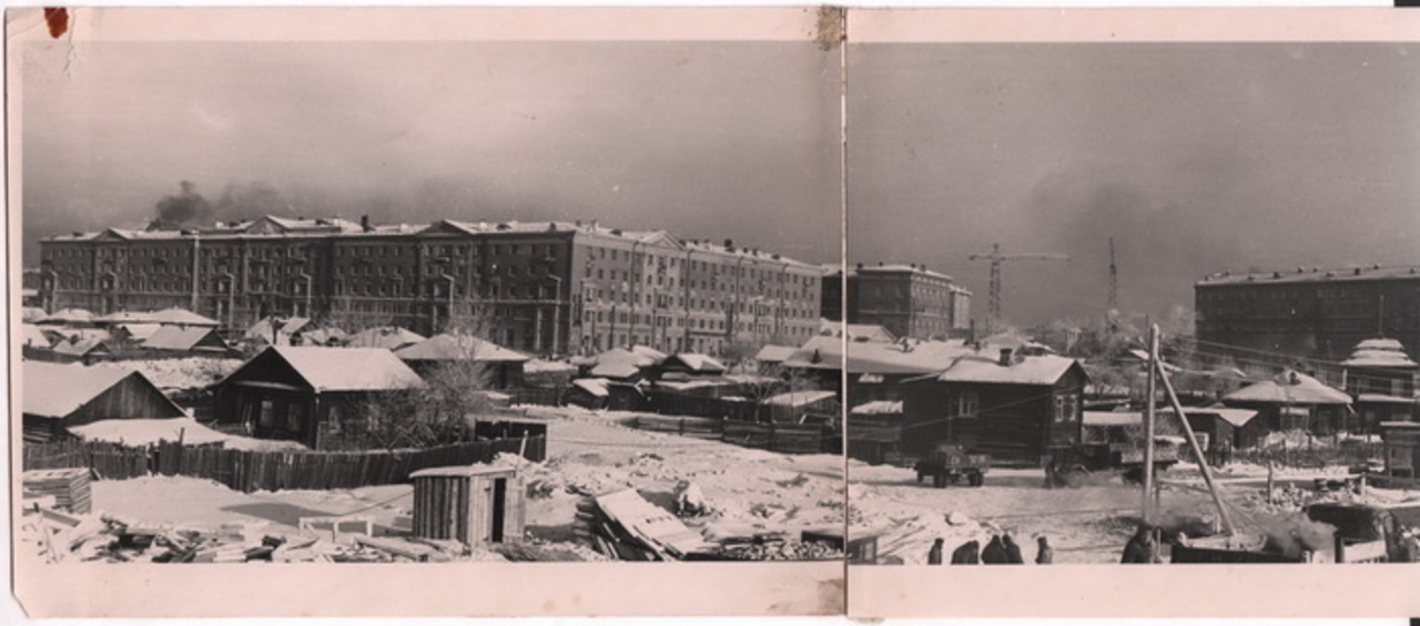 Жилые дома Управления Урало-Сибирского округа Свердловской железной дороги и Уралтранспроекта по ул. Испанских рабочих - Мельковской в г. Свердловске. Панорама. 1950-е гг. Архитектор В.В. Безруков