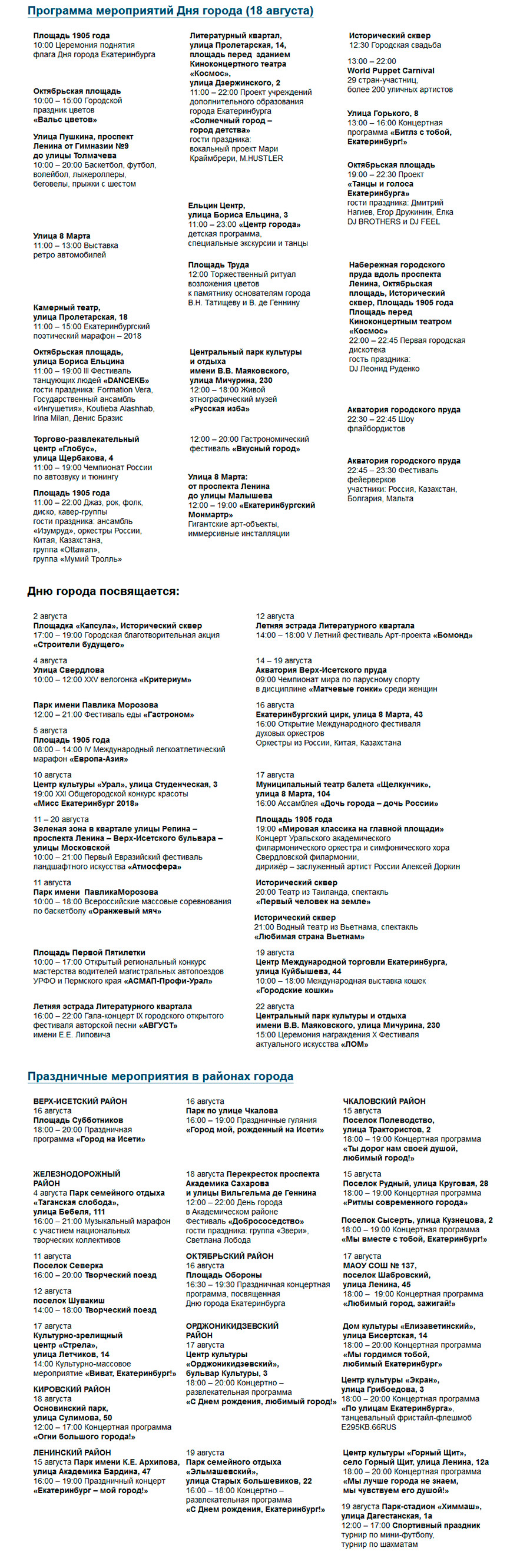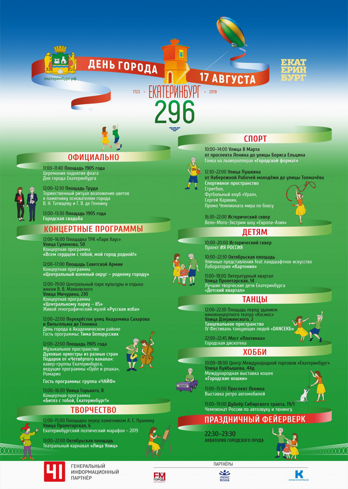 Программа мероприятий, посвященных 280-летию Екатеринбурга: