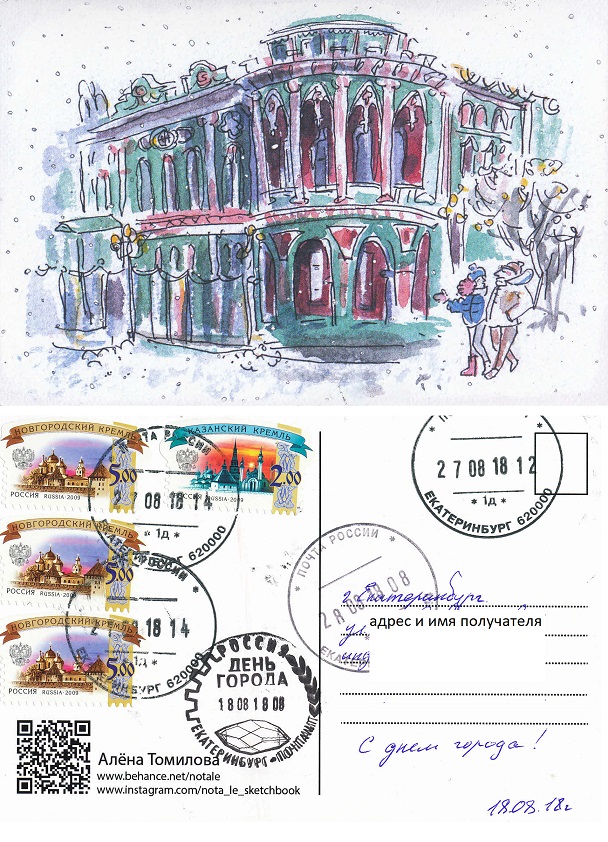 Сегодня достали из почтового ящика открытку, отправленную в День города. |