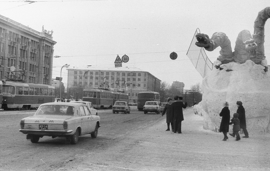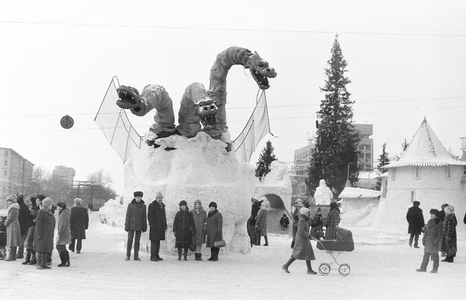 Змея Горыныча в ледовом городке хорошо помню. С годом дракона он никак не связан. Это зима 1985-1986 г. Январь 1986 года. Для меня памятное время, поэтому говорю точно. За фото спасибо! До сих пор жалею, что не сфотал тогда. Спасибо. У меня в записях был указан 1986 год, но я засомневался и решил, что вернее будет посмотреть,когда был год Дракона, а он оказался в 1988-м... |